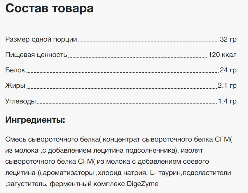 - Сывороточный концентрат, изолят и гидролизат в основе;