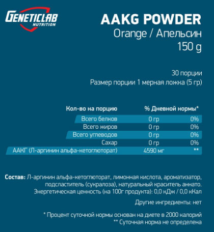 Аргинин, входящий в состав добавки AAKG Poer от Geneticlab, необходим организму для синтеза креатина — белка, отвечающего за рост мышечной массы, наполненности мышц, выполняющего энергетическую функцию в организме.