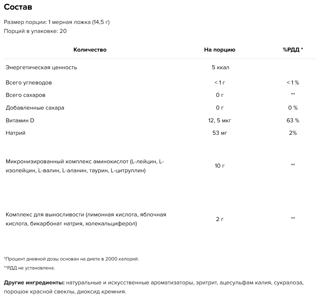 - 10 г аминокислот на порцию