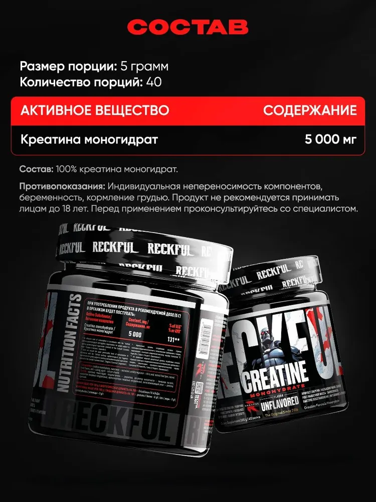 Reckful ® Creatine Monohydrate — для силы, выносливости и быстрого восстановления