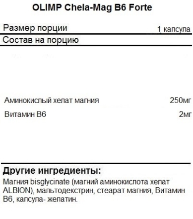 Магний OLIMP Chela-Mag B6 Forte 250 мг — 60 капс