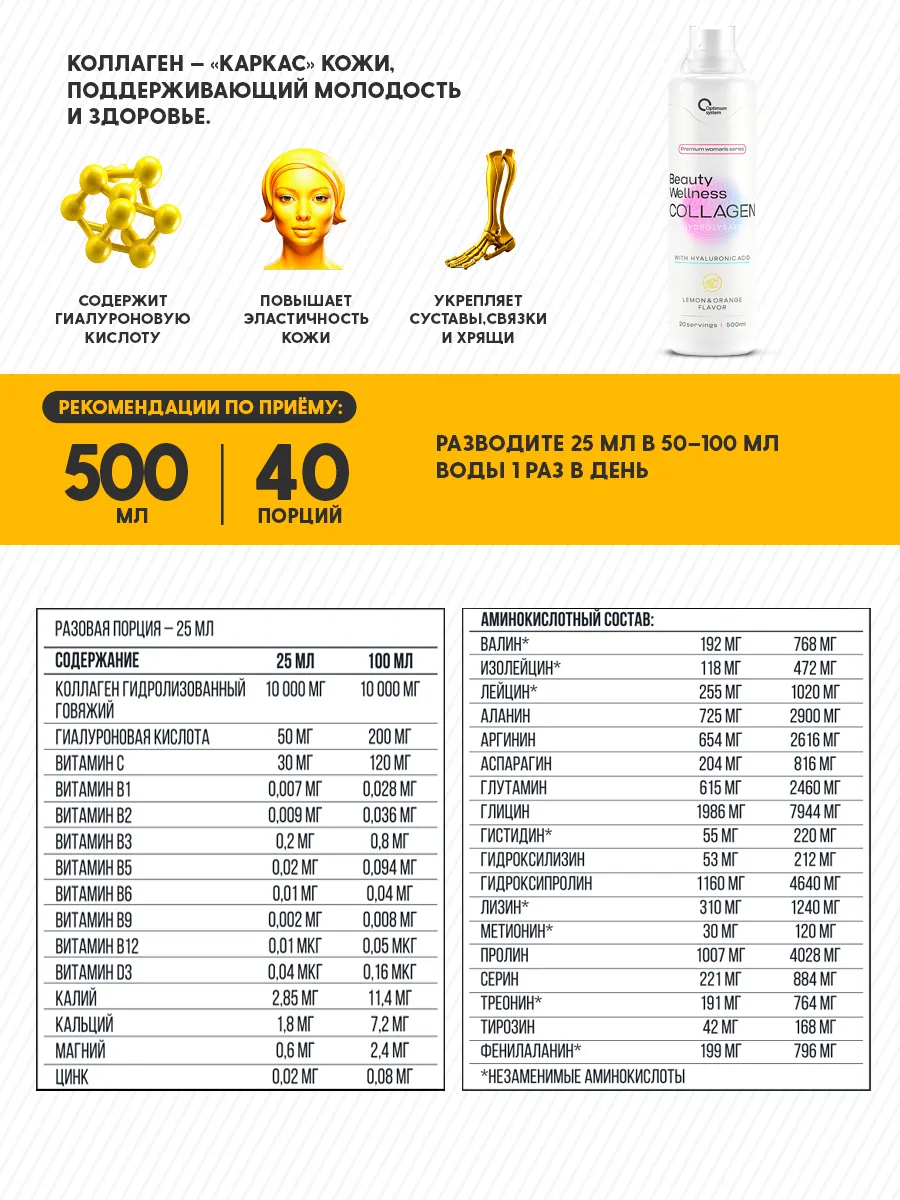 Коллаген жидкий OPTIMUM SYSTEM Collagen Beauty Wellness — 500 мл