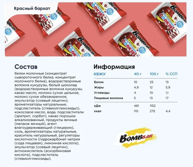 PROTEIN COOKIE — протеиновое печенье без муки и сахара с коллагеном, минимумом жиров и углеводов. Protein cookie от Bombbar — яркая классика полезного и спортивного печенья. В составе используется высококачественный протеин без примесей и лишних добавок — что позволяет получать максимум белка и клетчатки в составе сладостей!